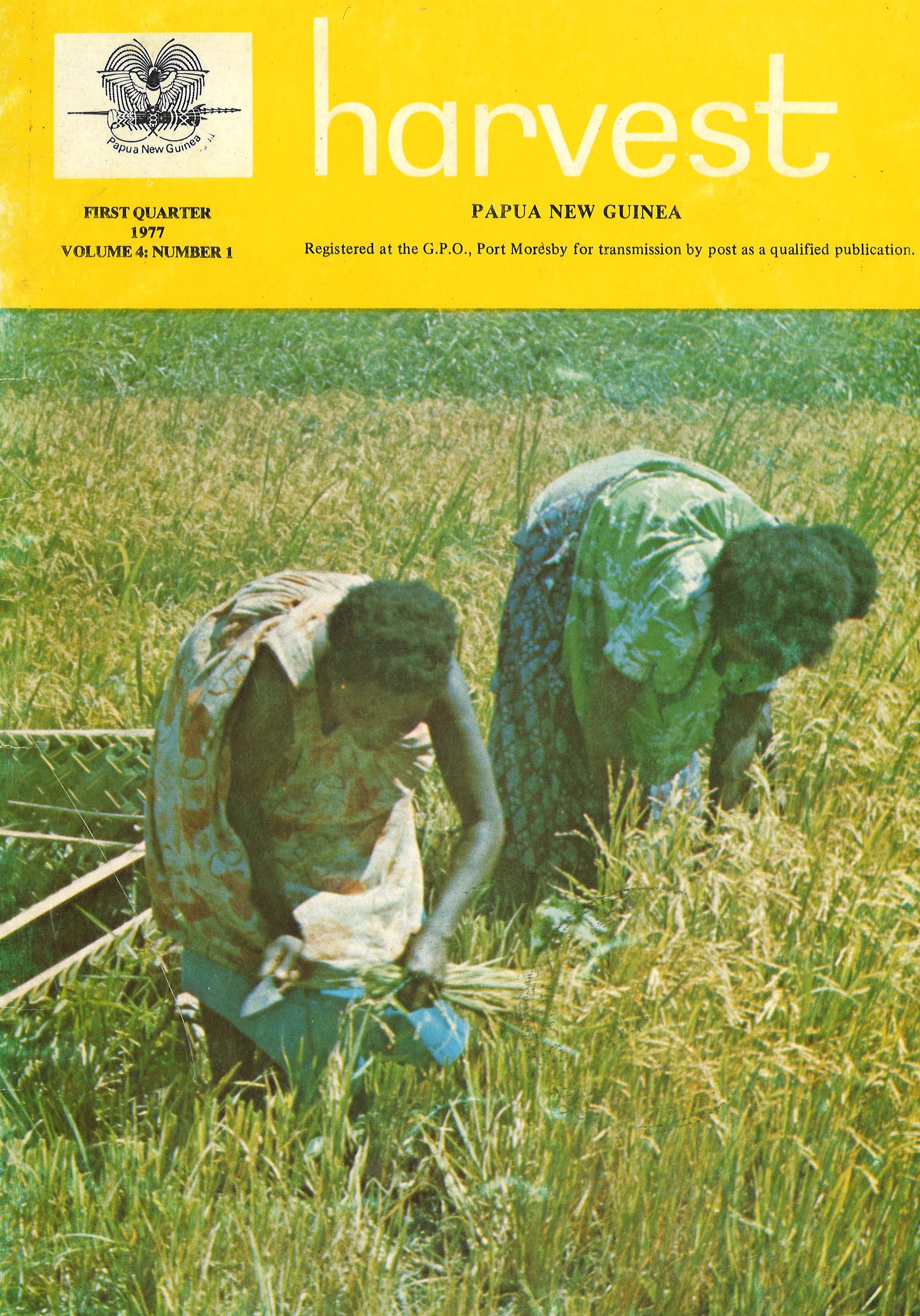 Vol. 5 No. 4 (1979)Harvest is published quarterly by the Department of Primary Industry. It has articles on all aspects of primary industry including agriculture, fisheries, forestry and livestock. It is read by researchers, extension workers, students and teachers all over Papua New Guinea and overseas.