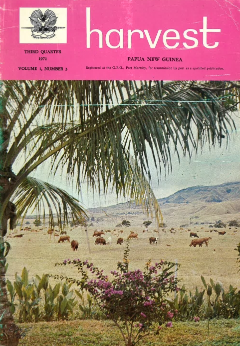 Vol. 1 No. 1 (1971)Harvest is published quarterly by the Department of Agriculture, Stock and Fisheries under the authority of His Honour the Administrator. It is distributed free to primary producers and other qualified persons.