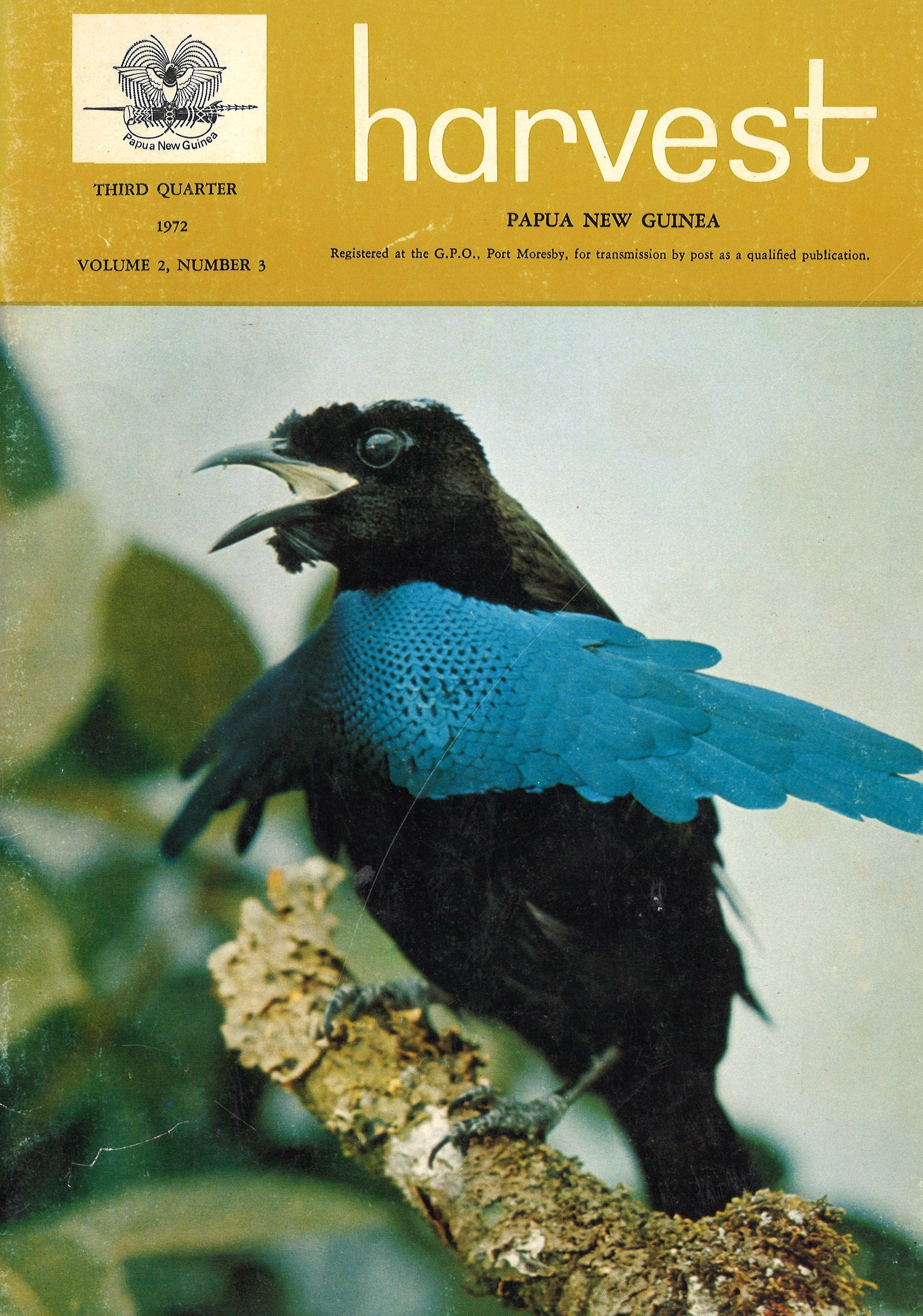 Vol. 2 No. 3 (1972)Harvest is published quarterly by the Department of Agriculture, Stock and Fisheries under the authority of the Minister of Agriculture, Stock and Fisheries. It is distributed free to primary producers and other qualified persons.