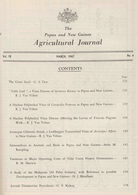 The increasing volume and speed of international air services has greatly increased the risk of disseminating insect pests and vectors of diseases, including agricultural pests and diseases. It is the responsibility of national ,plant quarantine services to institute the necessary control measures. Methods of disinfecting aircraft are discussed and it is recommended that spraying by aerosols be carried out upon the arrival of the aircraft at the airport of entry, and before the disembarkation of passengers and crew Aerosol formulations used for aircraft disinfection should contain a concentration of the active principles of not Less than that contained in the "Standard Reference Aerosol" recommended by W.H.0. Attention is drawn to the possibilities of vapor fumigation.
