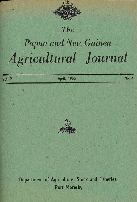 Vol. 9 No. 4 (1955)The Papua and New Guinea Agricultural Journal deals with recent advancement of tropical agriculture and acts as an extension medium for the dissemination of agricultural information to the Territory planting and farming community.