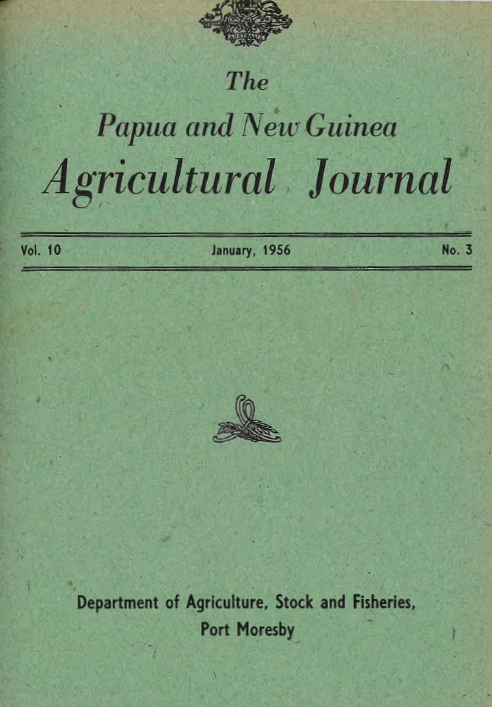 Vol. 10 No. 3 (1956)The Papua and New Guinea Agricultural Journal deals with recent advancement of tropical agriculture and acts as an extension medium for the dissemination of agricultural information to the Territory planting and farming community.