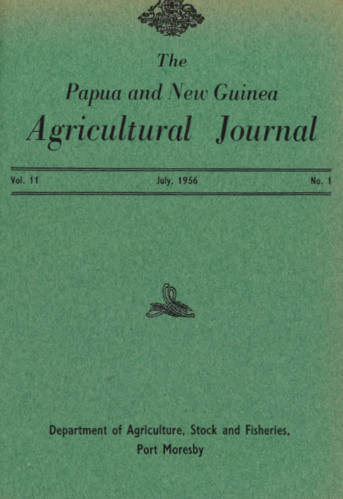 Vol. 11 No. 1 (1956)The Papua and New Guinea Agricultural Journal deals with recent advancement of tropical agriculture and acts as an extension medium for the dissemination of agricultural information to the Territory planting and farming community.
