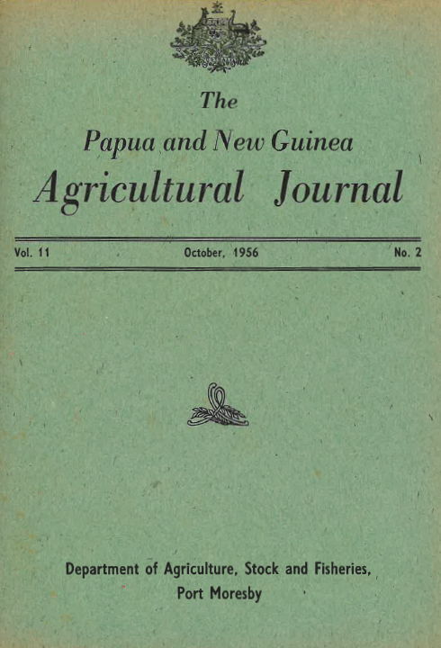 Vol. 11 No. 2 (1956)The Papua and New Guinea Agricultural Journal deals with recent advancement of tropical agriculture and acts as an extension medium for the dissemination of agricultural information to the Territory planting and farming community.