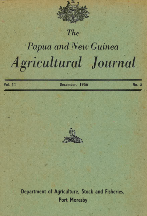 Vol. 11 No. 3 (1956)The Papua and New Guinea Agricultural Journal deals with recent advancement of tropical agriculture and acts as an extension medium for the dissemination of agricultural information to the Territory planting and farming community.