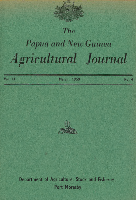 Vol. 11 No. 4 (1959)The Papua and New Guinea Agricultural Journal deals with recent advancement of tropical agriculture and acts as an extension medium for the dissemination of agricultural information to the Territory planting and farming community.